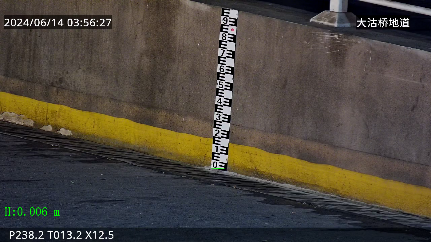 针对城市道路易积水地区,可采用虚拟水尺的方式实现积水水位监测,通过标定道路参照物(墙体、护栏柱子等),实现积水水位实时监测预警。